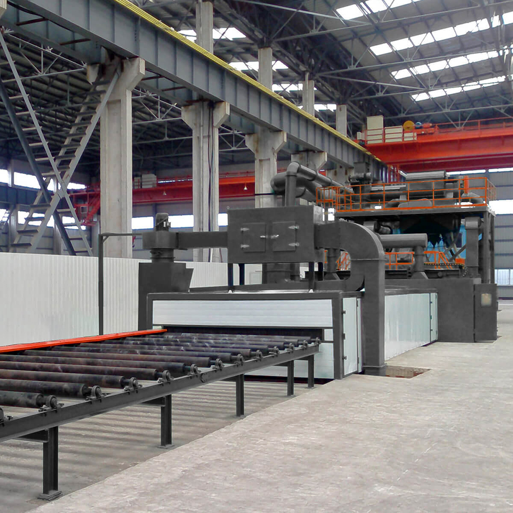 Автоматическая дробеструйная линия HRS-BCА2000 - это технологический комплекс, предназначенный для очистки металлических заготовок от окалины, ржавчины, старой краски и других загрязнений с последующим нанесением грунтовочного покрытия и сушкой. Эта система используется в машиностроении, судостроении, металлообработке и строительстве для подготовки металлоконструкций перед покраской или дальнейшей обработкой.