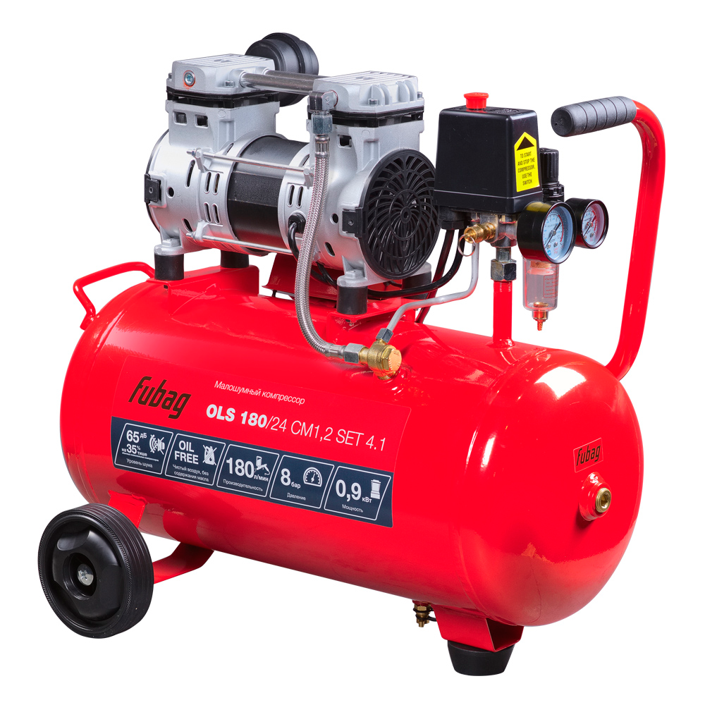 Набор компрессорного оборудования FUBAG OLS 180/24 CM1.2 SET4.1 - лучший выбор, если нужен чистый, без примесей масла, воздух при работе с краскопультами, аэрографами и другими окрасочными инструментами для проведения ответственных покрасочных работ.