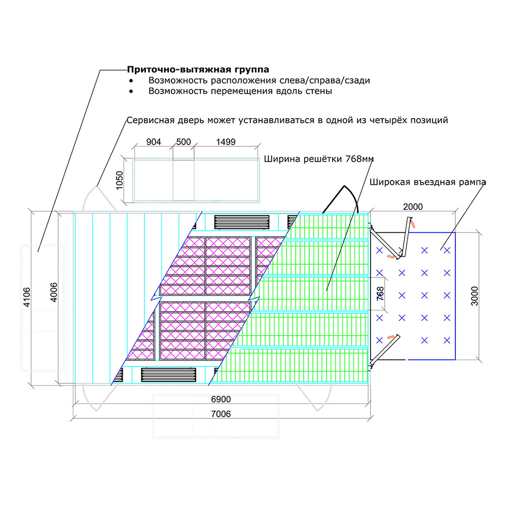 Широкий выбор различных оснований для быстрого и удобного монтажа в любых помещениях со сложными участками позволяет оптимизировать воздушные потоки для любых технологических процессов окраски, продувки и сушки. Пульт управления расположен на внешней стороне стены и может устанавливаться в любом удобном месте.