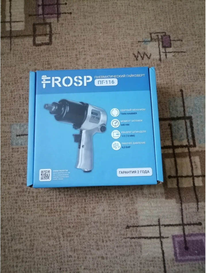 Модель FROSP ПГ-116 имеет квадрат шпинделя 1/2 дюйма. Есть функция реверса, а также регулировки момента затяжки. Этот пневмогайковерт можно назвать самым популярным в своем сегменте. Он сочетает в себе стабильную работу, длительный срок эксплуатации, доступную цену.