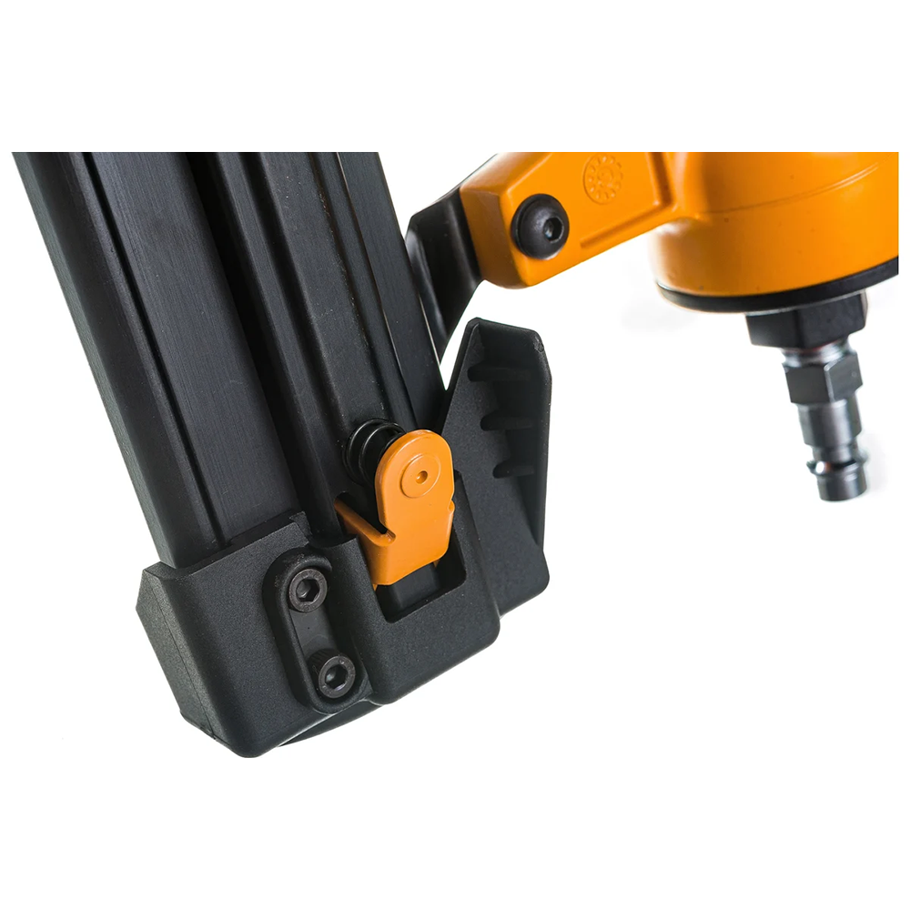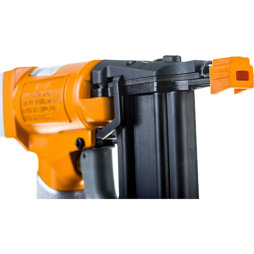 Универсальный профессиональный комбинированный инструмент для множества задач. Может использоваться как в деревянном домостроение, так и для бытовых нужд. Не требует перенастроек магазина при замене крепежа с штифта на скобу и обратно. Инструмент работает в режиме пистолета «ST» и имеет регулировку глубины забивания. Вместе с инструментом в пластиковый кейс укомплектовано все необходимое, в том числе 1000 штук шпилек и 800 штук скоб. Вы просто подключаете воздух и начинаете работать.