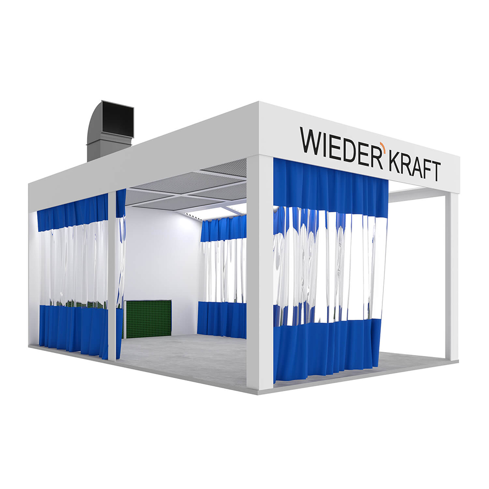 Пост подготовки к окраске WDK-410 предназначен для создания требуемых технологических условий при проведении подготовительных работ к окраске. По всей площади пленума установлены фильтры тонкой очистки. В комплект входят шторы для изоляции рабочей зоны от основного помещения.